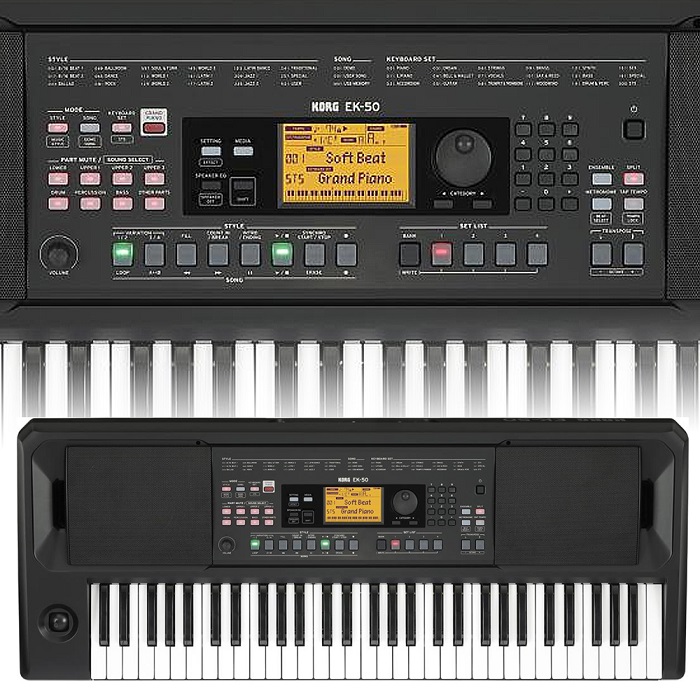 KORG EK-50 Enterteinment Keyboard - Estilos que te ayudan en tu interpretación EK-50 está equipado con la función de acompañamiento automático basada en “Estilos”, que produce automáticamente un rico acompañamiento tocando con un dedo de la mano izquierda, o bien tocando acordes. Puesto que este acompañamiento cambia según la posición en el teclado o el acorde que toques, puedes improvisar fácilmente tocando la melodía con la mano derecha. Es como tener un grupo que ya sabe cientos de canciones, simplemente tocando con un dedo. Los Estilos disponibles en EK-50 cubren más de 280 géneros musicales de todo el mundo, cada uno con cuatro variaciones que van desde simples a complejas, así como una introducción y final para el inicio y final de la canción. Puedes añadir variedad a tu interpretación pulsando estos botones al compás del ritmo. También existe una función “STS” (Selección con un solo toque) que selecciona automáticamente los ajustes recomendados al cambiar los Estilos. Es una combinación perfecta de sonidos y estilos, todo configurado y listo para tocar, para que puedas centrarte en el aprendizaje, crear o interpretar. - Toca una amplia variedad de sonidos El EK-50 contiene más de 702 sonidos realistas, incluyendo pianos, violín, saxo y batería. Puedes seleccionar y tocar el sonido que necesites, tanto si estás tocando como solista o interpretando en un grupo musical. También puedes utilizar la función de división ‘Split’ para dividir el teclado y tocar diferentes sonidos al mismo tiempo: como el piano con la mano derecha y el bajo con la izquierda. Esto te permite disfrutar aún más con diferentes combinaciones de sonidos. - Un diseño que permite usar de forma intuitiva las numerosas funciones En el centro del panel de control disponemos de una pantalla brillante y clara que muestra los nombres de Estilos y el Sonido seleccionado en caracteres grandes, para una gran visibilidad. Los interruptores principales están iluminados con sus propios LEDs, para ayudarte a visualizar el ajuste de cada función. También hay un botón de Piano de cola que selecciona el sonido de piano en cualquier momento, independientemente del sonido seleccionado. - Altavoces incorporados para disfrutar de inmediato Los potentes altavoces estéreo de 10W x 10W ya están incorporados en el instrumento. Pueden reproducir no sólo el sonido del instrumento, sino también el sonido de un dispositivo externo conectado a la toma de entrada. Además, incluye un atril de partituras y un adaptador de CA, para que puedas empezar a tocar en cuanto lo saques de la caja. EK-50 también funciona con pilas AA (se venden por separado), ¡para que puedas tocar allá donde vayas! - Potentes Estilos Musicales para un completo entorno de interpretación EK-50 contiene 64 “Estilos Musicales” que preajustan el Estilo, Sonido y Tempo adecuados para las canciones que ya conoces. Simplemente seleccionando un Estilo Musical y tocando el teclado es una manera muy fácil de improvisar o crear ideas para canciones originales. - Reproduce tus canciones favoritas mientras tocas ¿Tienes una gran idea para una canción nueva? Puedes grabar tus interpretaciones en el EK-50 y también guardarlas. El Modo de Canción te permite reproducir tus propias creaciones originales, las canciones internas de demostración, datos de audio MP3 o WAV y datos SMF (Archivo MIDI Estándar) guardados en cualquier memoria flash USB, disponibles comercialmente. También podrás tocar sonidos mientras reproduces esas canciones. - Añade Estilos de la extensa librería de Korg EK-50 es un instrumento abierto, que te permite añadir hasta 96 Estilos mediante una unidad flash USB. Esperamos agregar nuevos datos a la Web KORG en el futuro y te mantendremos informado. Teclado 61 teclas (sensible a la velocidad) Control de Toque: Ligero, Medio (estándar), Fuerte, Fijo Generador de Sonido Generador de Sonido Estéreo PCM Polifonía Máxima 64 voces Sonidos Más de 702 sonidos, 41 kits de Batería (incluyendo conjuntos de sonido compatibles GM)Conjuntos de TecladoMás de 170 sets EfectosParte de Acompañamiento2 Multi-Efectos Estéreo digitalesParte de Teclado2 Multi-Efectos Estéreo digitalesTipos34 tipos (148 variaciones) EstilosMás de 280 presets 2 intros, 4 variaciones, 2 rellenos, 1 cuenta atrás/ruptura, 2 finales, synchro start/stop, tap tempoEstilos Musicales64 estilosCanciones Demo18 cancionesReproductor de AudioMP3, WAV (44.1 kHz) SecuenciadorGrabaciónGrabación en tiempo real (Modo de Estilo), máximo 999 canciones (aprox. 100.000 notas), 12 pistas (4 partes de teclado 8 partes de acompañamiento automático), formato original (puede convertir a SMF0)Reproducciónsoporta Reproducción de canción (tocar en el teclado durante la reproducción de la canción), Formato SMF (archivo MIDI estándar) 0 ó 1 Escalas11 tipos (incluyendo escala de usuario)ControlesBotón de encendido, mando VOLUME, joystick, botón STYLE/[MUSIC STYLE], botón SONG/[DEMO SONG], botón KEYBOARD SET/[STS], botón GRAND PIANO, cada botón de la sección PART MUTE/[SOUND SELECT], botón SETTING/[EFFECT], botón MEDIA, botón SPEAKER EQ/[SPEAKER OFF], botón [SHIFT], botón ENSEMBLE, botón SPLIT, botón METRONOME/[BEAT SELECT], botón TAP TEMPO/[TEMPO LOCK], botones TRANSPOSE b y #/[OCTAVE –/ ], Dial, botón CATEGORY, botones de Valor, botón , botón -, cada botón de la sección STYLE/SONG, cada botón de la sección SET LISTSet lists10 bancos × 4MetrónomoTempo, beat, volumenTempo30–240Transposición de tecladoC (-12) a C (0) a C ( 12)Afinación427.5–452.9 Hz Entrada/SalidaToma para controlador de pedal6.3 mm (1/4") jack * El EK-50 no soporta la función de medio-pedal.Toma AUDIO IN3.5 (1/8”) mm Estéreo mini-jackTomas OUTPUT L/ MONO, R6.3 mm (1/4”) jack (no balanceado)Toma de auriculares3.5 mm (1/8”) Estéreo mini-jackPuerto USB ATO DEVICE para conectar memoria USB flash y controladoresPuerto USB BTO HOST para conectar