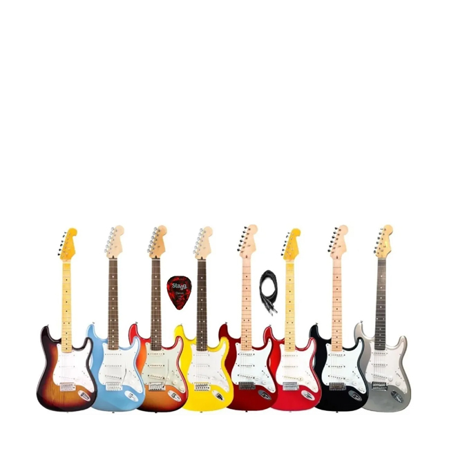 Características principales Marca Kansas Modelo Stratocaster Línea Stratocaster Origen China Forma del cuerpo Stratocaster Orientación de la mano Diestro Otras características Tipo de madera del mástil: Maple Tipo de madera del cuerpo: Aliso Cantidad de cuerdas: 6 Cantidad de trastes: 21 Cantidad de micrófonos: 3 Largo de la escala: 648 mm Descripción La Kansas Stratocaster es una guitarra con una excelente relación calidad-precio, ideal para dar los primeros pasos como guitarrista. No obstante su precio, estamos hablando de una guitarra confiable y sólida que no va a decepcionar al momento de ensayar o tocar en vivo.. CARACTERÍSTICAS General Model Name: Stratocaster RWN Color : A eleccion Cuerpo Cuerpo: Alder Forma del cuerpo: Stratocaster® Acabado del cuerpo: Polyurethane Mástil Número de trastes: 21 Marcadores de posición: Incrustaciones de posición de punto blanco Diapasón: Rosewood Material del mástil: Maple Placa de mástil: Estándar de 4 tornillos Electrónica Configuración de cápsulas: S/S/S Selector de cápsulas: 5-Position Blade: Position 1. Bridge Pickup, Position 2. Bridge and Middle Pickup, Position 3. Middle Pickup, Position 4. Middle and Neck Pickup, Position 5. Neck Pickup Controles: Volumen Master, Tono 1. (Pastilla del mástil), Tono 2. (Pastilla central) Hardware Herrajes: Cromo Puente: Trémolo Clavijeros: Diecast Palanca de tremolo: Palanca de trémolo tipo Vintage YULMAR "Desde 1984 en la venta de articulos para la electronica y el musico "... Somos una empresa líder en el mercado de la música, con más de 30 años de historia. Tenemos como foco principal ofrecer productos de alta calidad, y acompañar al cliente en el proceso de la compra para que le sea lo más simple y 100% transparente. Somos Mercado Platinum con Calificaciones Positivas que avalan Nuestro Servicio.. Compra con confianza que respondemos y solucionamos todas las dudas que tengas. --------------------------------------------------------- GARANTIA: 6 MESES