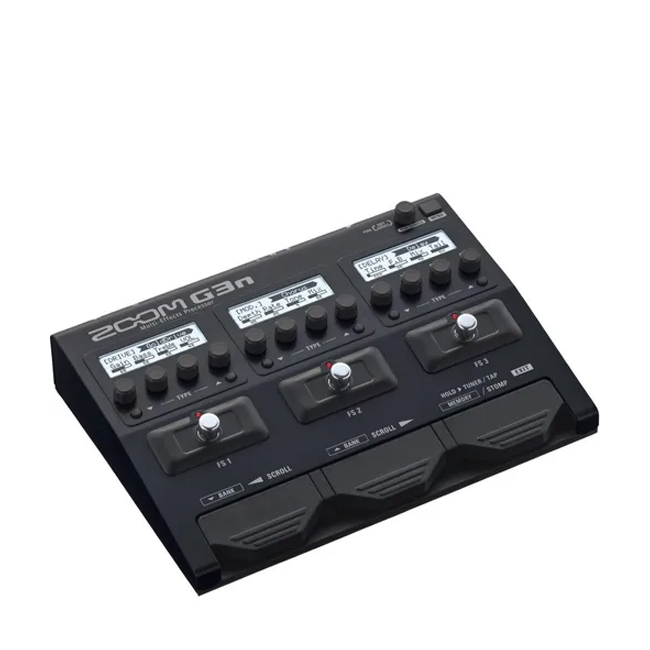 Características principales Marca Zoom Modelo G3N Otras características Voltaje de funcionamiento: 9V Instrumentos compatibles: Guitarra eléctrica Tecnología: Digital Incluye fuente de alimentación: No Incluye pedal de expresión: No Es pedal multiefecto: Sí Cantidad de efectos: 70 Tipos de efectos: Multiefecto Ancho x Profundidad x Altura: 234 mm x 181 mm x 58 mm Peso: 1.28 kg Descripción G3n El Zoom G3n es un procesador multiefectos de suelo para guitarra eléctrica. Presentado en octubre de 2016, actualiza el pedal G3 saliente. Es intuitivo de usar y está repleto de funciones. Lo suficientemente pequeño como para caber en una bolsa de viaje, es muy portátil. El Zoom G3n suena muy bien y viene con un looper de 80 segundos. Compre en línea hoy en Guitar.co.uk o visite nuestra tienda de Glasgow. Ofrecemos un servicio de entrega rápido en el Reino Unido y Europa. EL ZOOM G3N VIENE CON EFECTOS DE PEDAL ESTILO BOUTIQUE. El Zoom G3n viene precargado con 70 efectos DSP elaborados y ensamblados por expertos (68 efectos, 1 pedal looper y 1 pedal rítmico), además de 10 de los emuladores de amplificador gabinete más realistas que hemos creado. Han cargado el G3n con sonidos de guitarra esenciales como overdrive, distorsión, compresión, EQ, delay, reverb, flanging, phasing, vibrato y chorusing. También se incluyen multiefectos únicos como el filtro Seq, Reverse Delay, HD Hall y OSC Echo. CADENA DE SEÑALES. Utilice hasta siete efectos y modelos de amplificador caja simultáneamente, encadenados en el orden que desee. Es como tener cientos de pedales completamente cargados, todo en un dispositivo compacto y fácil de usar. Emulación de amplificador en el G3n. Elija entre cinco modelos de amplificadores clásicos y ajuste el sonido exactamente como lo haría con las perillas y los interruptores del dispositivo real, y luego empareje su amplificador con uno de los cinco nuevos emuladores de gabinete para completar el sonido. Además, puede descargar combinaciones de amplificador caja aún más fielmente recreadas, como Fender Bassman, Hi-Watt Custom 100, Mesa Boogie Dual Rectifier Orange Channel, Fender 65 Deluxe Reverb y Orange Graphic120, disponibles ahora con más lanzamientos cada mes. 75 parches personalizados. Recrea tonos de guitarra esenciales y abre nuevos territorios con 75 parches de diseño personalizado creados exclusivamente por guitarristas de Zoom. Utilice estos parches para emular los sonidos icónicos de Eddie Van Halen, Jimi Hendrix, Jimmy Page, Carlos Santana, Michael Schenker y Brian May o explore algo completamente nuevo. Edición rápida. Los interruptores y perillas del Zoom G3n le brindan un control mejorado y tienen la sensación práctica y receptiva de un pedal de efectos estándar. El G3n combina tres pantallas LCD para mostrar cadenas de efectos completas de un vistazo, lo que facilita agregar, eliminar o cambiar el orden de los efectos rápidamente. Además, puede almacenar hasta 150 de sus cadenas de efectos personalizadas como parches. Actuación y práctica. Hay 68 patrones de ritmo incorporados incluidos con el G3n, lo que lo convierte en el equipo de práctica perfecto y permite actuaciones de "banda de un solo hombre". Un Looper integrado (que se puede usar con los patrones de ritmo) le permite grabar y sobregrabar frases de hasta 80 segundos de duración a través de los efectos que elija. Un afinador cromático incorporado le permite omitir el parche seleccionado actualmente mientras afina, o silenciar la señal por completo. Entrada Salida G3n. El G3n se puede integrar fácilmente en cualquier actuación en vivo o equipo de estudio. Además de una entrada de guitarra estándar, hay una entrada estéreo auxiliar para conectar teléfonos inteligentes o reproductores de música. También incluye un conector de auriculares dedicado para practicar y salidas duales para conexión mono o estéreo L R a amplificadores de guitarra, sistemas de megafonía e interfaces de audio. La función Mic On Off le permite optimizar el G3n para su uso con un amplificador y gabinete reales (Mic Off), así como optimizar para tocar a través de un sistema de megafonía o grabar directamente con emuladores de amplificador y gabinete (Mic On). Software Guitar Lab de Zoom. El software gratuito Zoom Mac Windows le permite administrar sus parches y descargar nuevos efectos y emuladores de amplificador gabinete. Incluye un Administrador de parches para cadenas de efectos y un Administrador de efectos, con una interfaz gráfica de usuario simple que proporciona control de apuntar y hacer clic para cambiar el nombre o reordenar sus parches personalizados.
