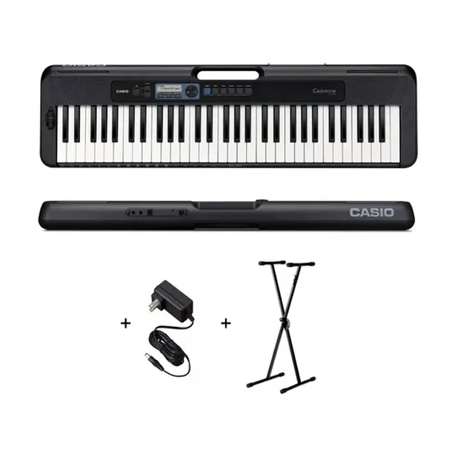 Marca Casio Modelo CT-S300 Otras características Cantidad de teclas: 61 Polifonía máxima: 48 Cantidad de ritmos: 77 Incluye pedales: No Con interfaz MIDI: Sí Tipos de alimentación: Fuente de alimentación Accesorios incluidos: Fuente de alimentacion,Atril para partituras,Soporte tijera Pantalla: LCD Efectos digitales: Reverberación Compatibilidad MIDI con GM: Nivel 1 Terminales de entrada/salida: Conector de teléfonos,Entrada de audio,Pedal,USB Adaptador de CA: AD-E95100L Ver más características Descripción Teclado Organo Casio Cts300 Casiotone Sensitivo Nuevo Modelo Fuente Soporte Diseño portátil, delgado y elegante Con el CT-S300, puede disfrutar de la música en cualquier momento y lugar. Su tamaño compacto de 930 mm x 256 mm x 73 mm es un 30 % más pequeño en volumen que el modelo CT-K3500 y su batería alcalina cuenta con aproximadamente 19 horas de duración*. Llevarlo es muy sencillo, gracias a un mango en la parte superior del teclado y un peso de solo 3,3 kg. El diseño incorpora bordes y esquinas redondeados, lo cual permite transportarlo con seguridad. El período de funcionamiento continuo puede ser más corto según el tipo de batería y la manera en que toca música. Diseño portátil, delgado y elegante Una interfaz fácil de usar para todos El CT-S300 presenta una interfaz simple e intuitiva que ofrece un diseño organizado con menos botones mediante una pantalla LCD de puntos completos y un selector. También cuenta con un botón de inicio que permite a los usuarios volver a la pantalla original en cualquier momento, lo cual convierte a este producto en un teclado multifunción superior con una facilidad de uso mejorada. Una interfaz fácil de usar para todos Sonido que nadie esperaría de un teclado tan compacto El uso de altavoces ovalados de 13 cm x 6 cm con imanes reforzados ofrece un sonido sorprendentemente genial para un instrumento tan compacto. Una función adicional que optimiza el ecualizador en conjunto con el volumen proporciona un sonido equilibrado desde los tonos graves hasta los tonos altos, incluso a un volumen bajo. El modo de música bailable y las voces amplían las formas para disfrutar tocando la música El CT-S300 incluye un modo que permite a los usuarios juntar frases de batería, bajo y sintetizador para disfrutar fácilmente de la música bailable, además de 12 tipos de voces de música bailable que encajan muy bien con esta música. Solo presione junto con el ritmo para agregar detalles a la reproducción común y disfrute de la música bailable. Teclas similares a las de un piano y sensibles al tacto Las teclas tienen forma de caja, similar a las de un piano. La sensibilidad al tacto proporciona cambios de volumen y tono como los de un piano, dependiendo de la fuerza que se utilice para tocar las teclas. Botón Mi configuración Registre sus ajustes favoritos para recordar fácilmente tonos y ritmos como los que aprendió en la clase de música mientras practica en casa. Rueda de inflexión de tonos La rueda de inflexión de tonos hace fácil agregar efectos realistas de guitarra y saxo al teclado. Rueda de inflexión de tonos Puerto USB a host micro B para fines de expansión El CT-S300 incluye un conector USB a host micro B que le permite disfrutar fácilmente de la música, junto con su dispositivo inteligente o computadora. (Se requiere un cable disponible comercialmente). La conectividad de aplicaciones hace que practicar sea divertido Aplicación Chordana Play Muestre 50 canciones de demostración en la aplicación o archivos MIDI descargados en el rollo de piano Chordana Play o en la pantalla de partitura musical para reproducir sus canciones favoritas en cualquier momento y lugar. Reproduzca música sin leer una partitura musical presionando las teclas al ritmo con las barras a medida que bajan desde la parte superior de la pantalla. Registre su puntuación en la función de puntaje de la aplicación para que la práctica sea algo divertido y observe cómo mejora su habilidad para tocar. Especificaciones Teclado 61 teclas tamaño estándar Sensibilidad al tacto 2 niveles de sensibilidad, desactivados Polifonía Máxima 48 Tonos Tonos integrados: 400 Efectos digitales Reverberación: De 1 a 10, desactivado Metrónomo Compases por medida: de 0 a 16 Intervalo de tempo: de 20 a 255 Banco de canciones Canciones integradas: 60 Función de desactivación de parte: mano izquierda, mano derecha, ambas manos Acompañamiento automático Ritmos integrados: 77 Modo de música de baile Patrones incorporados: 50 Voz de música bailable: 12 Otras funciones Transposición: ±1 octavas (de -12 a 12 semitonos) Ajuste de sonido: A4 = de 415,5 a 465,9 Hz (predeterminado inicial: 440 Hz) Preajuste con un botón: 77 Botón de tono sostenido Pantalla LCD (contraste ajustable) Mi configuración: 1 Función de APLICACIÓN Chordana Play MIDI Recepción de timbres múltiples de 16, nivel 1 de GM estándar Rueda de inflexión de tonos de 0 a 12 semitonos Terminales de entrada y salida Conector de teléfonos/salida: Miniconector estéreo (3,5 mm) Conector de entrada de audio: Miniconector estéreo (3,5 mm) Puerto USB: micro B Conector para PEDAL: Conector estándar (6,3 mm) (pedal sostenido, sostenuto, suave, inicio/detención) Conector de alimentación 9.5V CC Fuente de alimentación Alimentación por dos vías 6 pilas alcalinas tamaño AA o pilas recargables de Ni-MH tamaño AA, funcionamiento continuo: aproximadamente 19 horas (pilas alcalinas), aproximadamente 15 horas (pilas recargables de Ni-MH)*, la duración real de la pila puede ser menor según el tipo de pila, el estilo de reproducción o el entorno de funcionamiento; adaptador de CA AD-E95100L (estándar JEITA, con enchufe de polaridad unificada), Apagado automático de 30 minutos (se puede desactivar). Valores medidos utilizando pilas eneloop. eneloop es una marca comercial de Panasonic Corporation. Parlantes 13cm x 6cm (ovalado) x 2 (Salida: 2.5W 2.5W) Consumo de energía 5.5 W Dimens